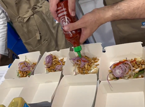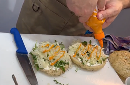 Met rucola, koolsla, verse uien en twee heerlijke sauzen – half kebab, half burger? Het wordt absoluut heerlijk!