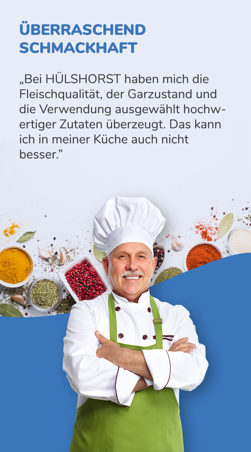 Ein direkter Kontakt zu Ihnen und unseren Kunden ist uns wichtig. Auf unserer Facebook-Seite finden Sie Neues vom Produktsortiment, Rezeptideen oder dem Unternehmen Hülshorst. Immer informiert bleiben!