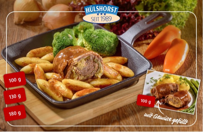 Unser Tipp gegen Weihnachtsstress in der Küche – und mehr Zeit für den Gast: Liebevoll vorbereitete Rouladen, bei uns sorgfältig von Hand gefüllt und gewickelt und in Soße gegart.