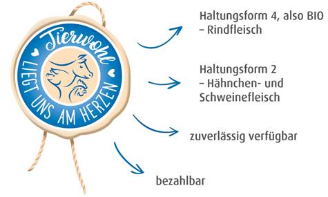 Gemeinsam können wir aber noch mehr erreichen. Als ITW-Partner wollen wir das Tierwohl in der breiten Masse verbessern und nicht in einer Nische. Lassen Sie uns zusammen Tierwohl stärken! Für Sie haben wir ein Sortiment leckerer, vielseitiger Tierwohl-Convenience erstellt, zu erkennen am rechts abgebildeten Siegel.