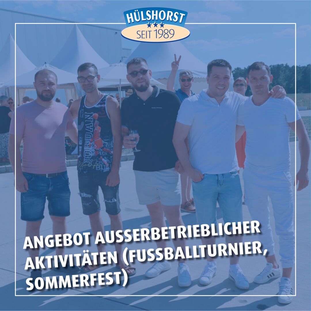 - Angebot außerbetrieblicher Aktivitäten (Fußballturnier, Sommerfest)